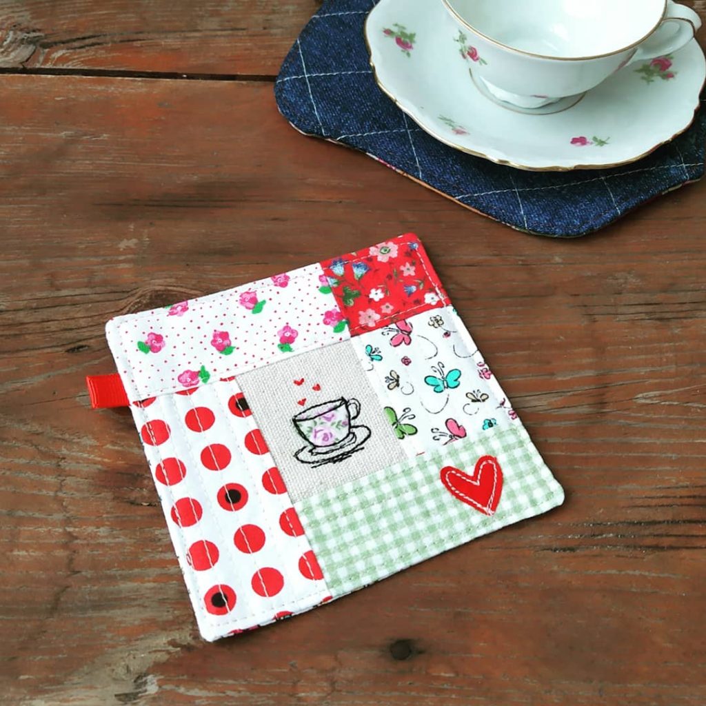 Aplike tekniğiyle daha önce de bardak altları dikmiştim. Küçük parçalar olduğu için nispeten kolay ve inanılmaz keyifli oluyor bunları dikmek.