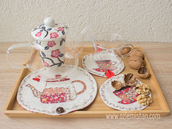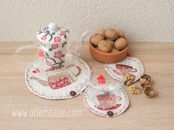 Ürünün adına ne demeliyim bilemedim. Bardakaltı desem tam olarak değil, servis seti desem anlaşılmıyor, nihale olabilir ama tam da değil. Çay matı ya da örtüsü? Alışılmadık. İnanın bilemiyorum. Bu konuda bir fikriniz varsa lütfen bana iletin, yorum bırakabilirsiniz.