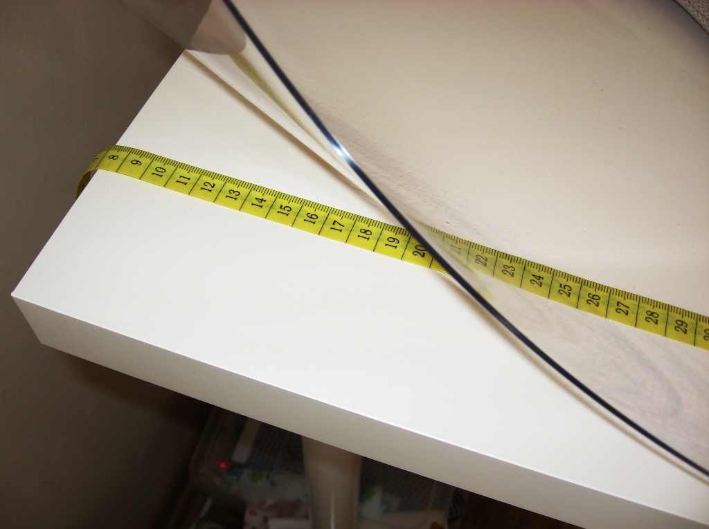 Sonradan yaptığım bir şeyi daha bu yazıya ilave etmek istedim. Masamın yüzeyi zarar görmesin diye üzerine şu cam gibi görünen plastik örtülerden kestirdim. Merak edenler için eni 1 metre, fiyatı 23 TL/m. Bana biraz pahalı gibi geldi ama yine de 60 cm aldım. Masayla örtünün arasına da boydan boya eski tip mezuramı yerleştirdim bazı şeyleri pratik ölçebilmek için. Başka şeyler de konulabilir fotoğraf yazı filan ama ben beyaz görünmesini tercih ediyorum. Örtünün dezavantajı ise kokusu, iki hafta oldu sereli ama hala oda plastik kokuyor malesef, geçer inşallah.
