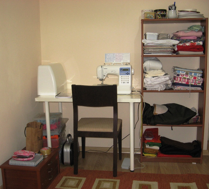 Daha önce şu yazımda dikiş malzemelerimle ilgili yaptığım birkaç düzenlemeyi anlatmıştım sizlere. O dönem küçük odam kullanılmayan bir masaüstü bilgisayar, onun masası, ıvırı zıvırı, benim bütün dağınıklığımın toplanma noktası, kumaşlar vs ile işgal altında ve dolayısıyla atıl durumda idi. Ben de dikişlerimi makineyi salondaki yemek masasına taşıyıp orada dikiyordum. Haliyle dağınıklık, etrafa dağılan iplik, toz vs çok sorun oluyordu. Bir de herşey başka odada olduğu için evin içinde odadan odaya gezmek vardı tabi. Kısaca dikiş odası şart olmuştu artık.