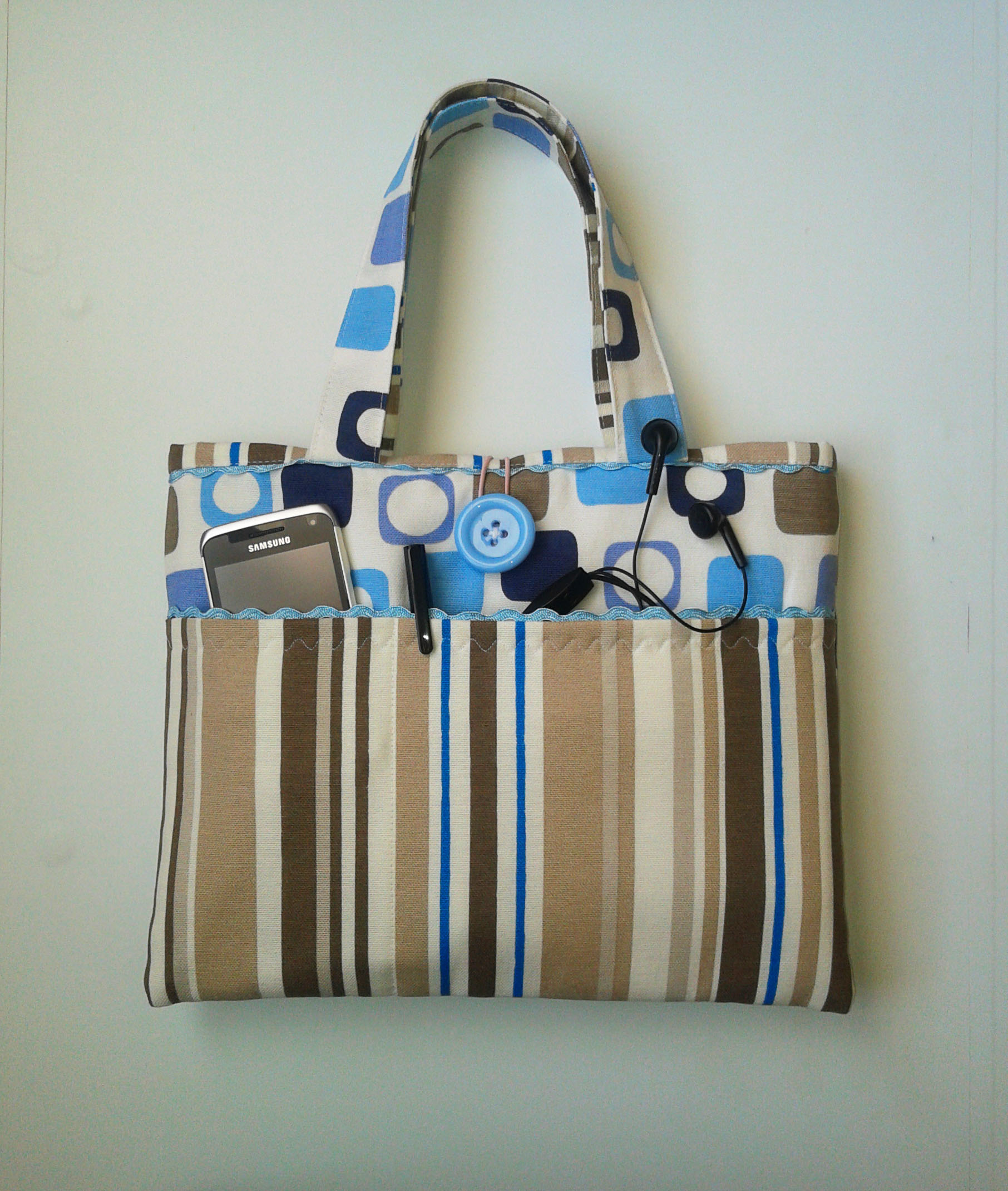 Süslemek için sutaşı ve irice mavi bir düğme kullandım. Düğme aynı zamanda diğer yüzden gelen lastik britle kapama işlevi görüyor.