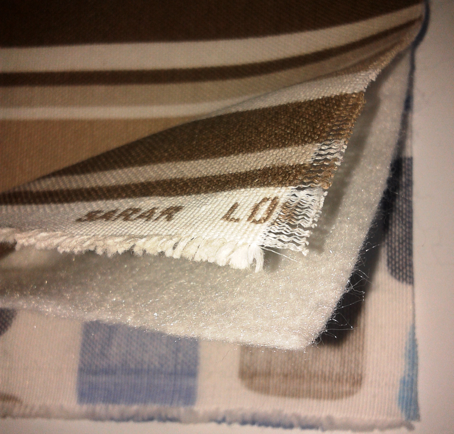 %100 Pamuk Sarev marka döşemelik kumaş ve arada dolgu olarak sıkıştırılmış elyaf kullandım.