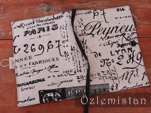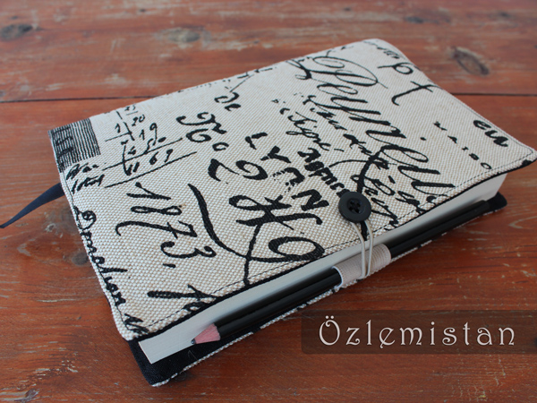 Sitedeki yazıların seyrekliğinden anlaşılacağı gibi yoğun bir dönemden geçiyorum. Henüz yurtdışından aldığım kumaşların hepsini dikip paylaşamadım sizinle. Bu harika kumaş da onlardan biri. 1800’lerden kalma el yazısı mektup havası olan bir kumaş, zaten görünce çok beğenmiştim. Kitap kılıfı olarak çok daha fazla beğendim.