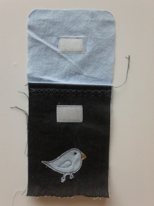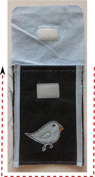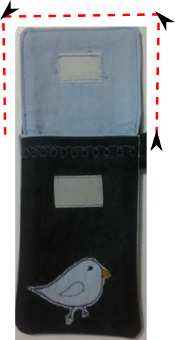 8. Son aşamada bıraktığımız boşluktan kılıfımızı çeviriyoruz ve boşluğu kapatmak için sadece kapak kısmının kenarlarına çıma çekiyoruz.